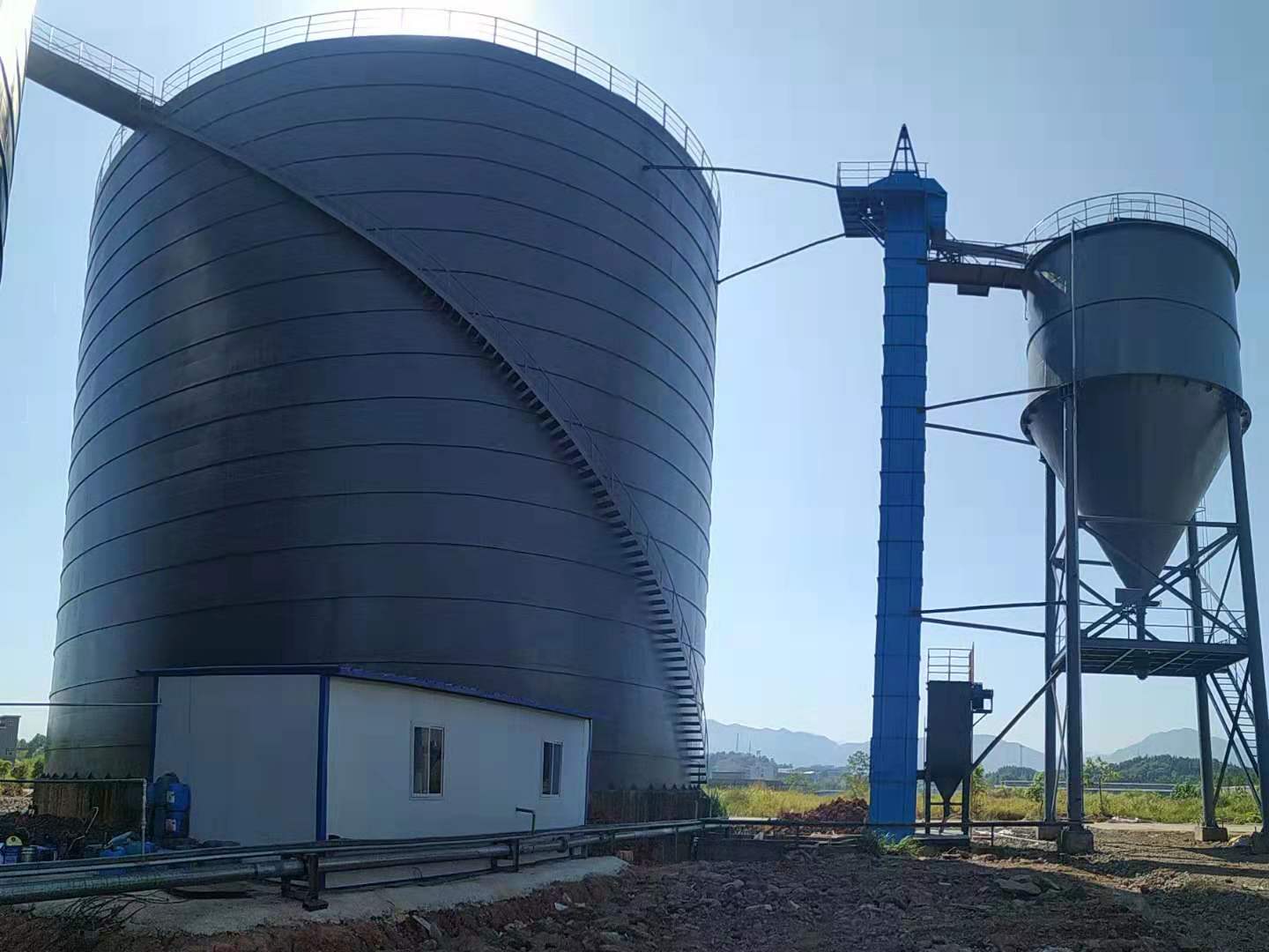 大型粉煤灰落地式钢板仓以其容量大、土地利用率高、自动化程度高、建设周期短、储存为全密封式储存形式,储存过程中没有任何污染,单位容积的投资低、等特点在物料存储、转运领域得到广泛应用。